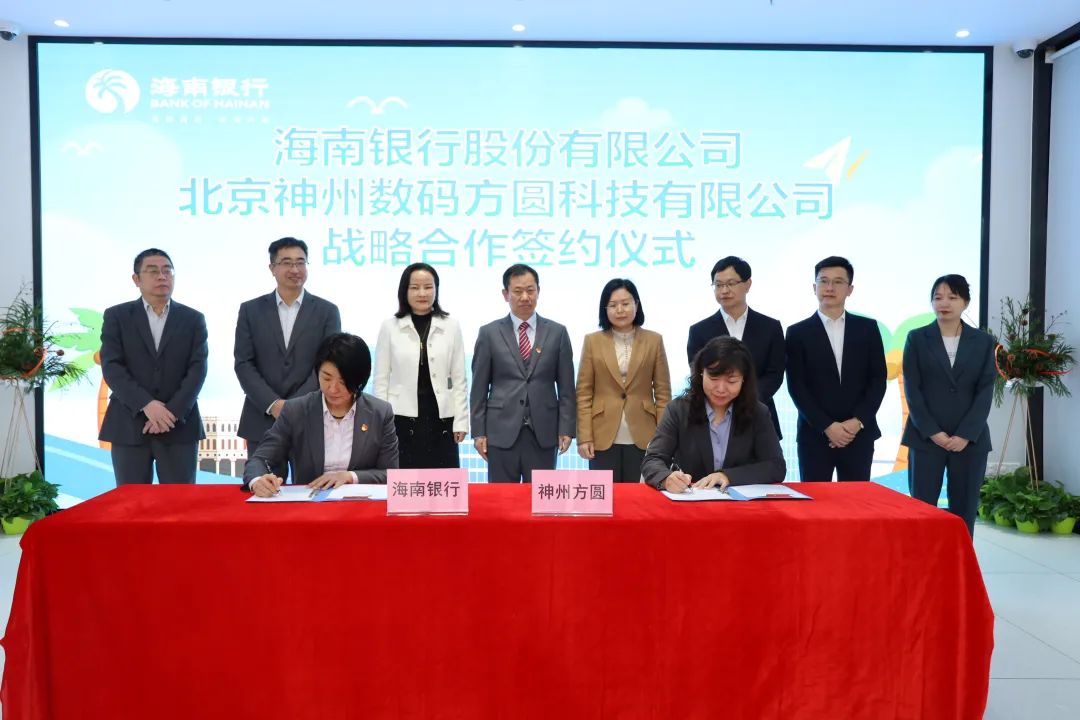 2023年2月1日上午,在海南银行金龙路支行开业的喜庆日子里,海南银行与神州信息全资子公司北京710公海寰宇方圆科技有限公司双方签署战略合作协议。海南银行与神州方圆把海口金龙路支行开业契机作为签约合作的新起点,双方秉持“夯实合作基础、拓宽合作领域、创新合作模式”的原则,围绕海南预付式消费新模式展开全面深入的合作,充分发掘、利用海南银行本土深耕发展的场景金融和神州方圆区块链、数字人民币技术领域的优势,整合双方资源、业务发展和产品延伸,开展更深层次、更宽领域、更高水平的战略合作。在二十大精神的指引下,双方携手进一步优化海南自贸港营商环境的建设,向全国打出一张海南省数字经济的新名片。
